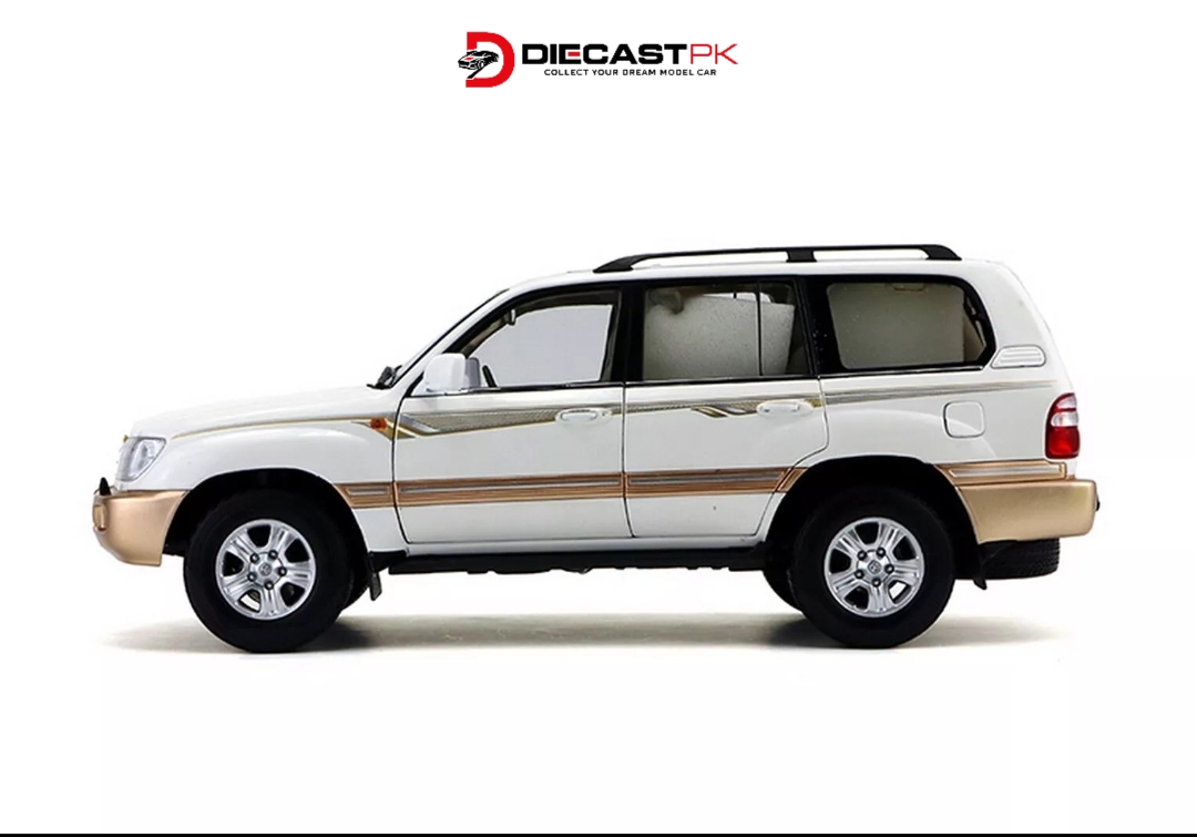 Exterior: Authentic paint finish, chrome trims, and Land Cruiser badging